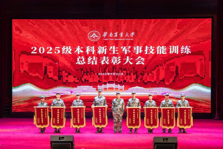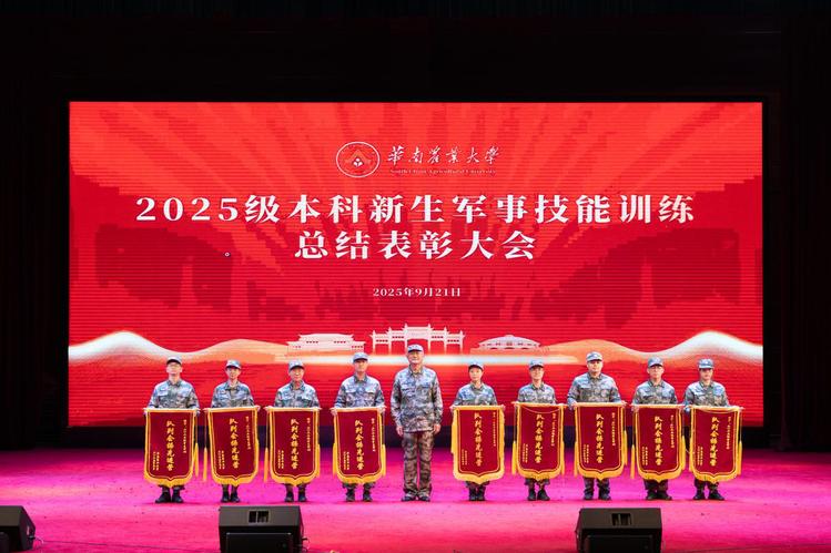 9月21日,华南农业大学2025级本科新生军训总结表彰大会在丁颖礼堂举行,历时19天的军事技能训练完美收官。校长薛红卫,校党委副书记、军训师政委丁红星,副校长、军训师师长杨运东出席大会。