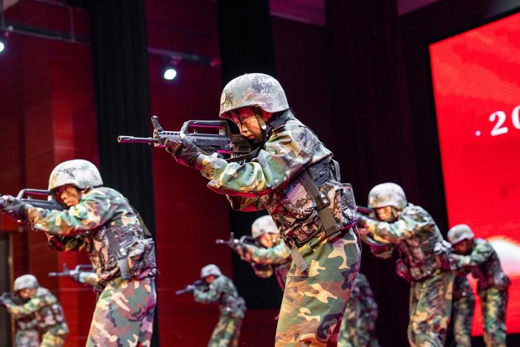 军事科目汇报展演环节,参训学生和教官带来队列、格斗基本功、匕首术、战术动作、破锋八刀、军体拳等项目的精彩展示,动作整齐、气势如虹,赢得现场热烈掌声。