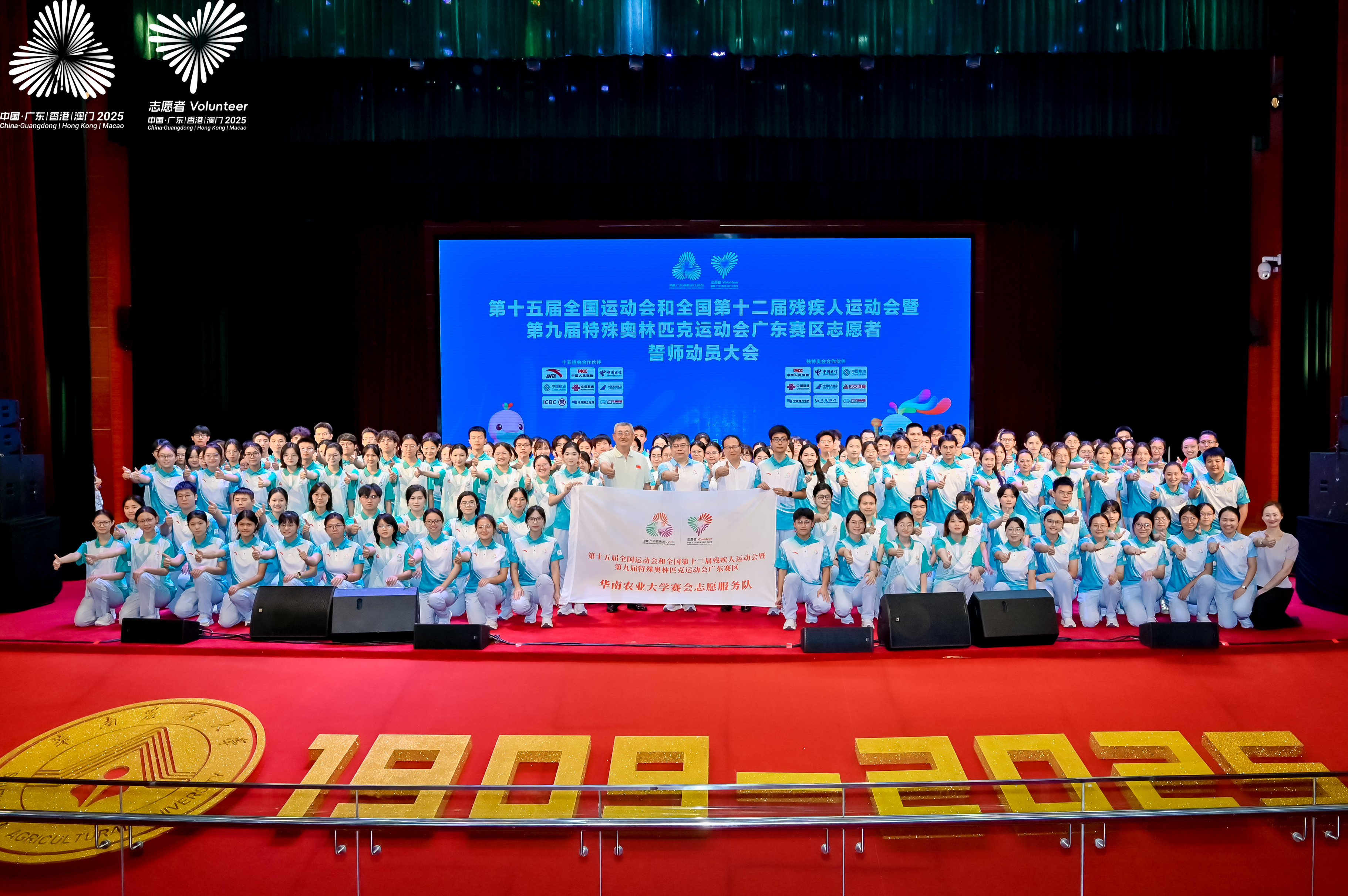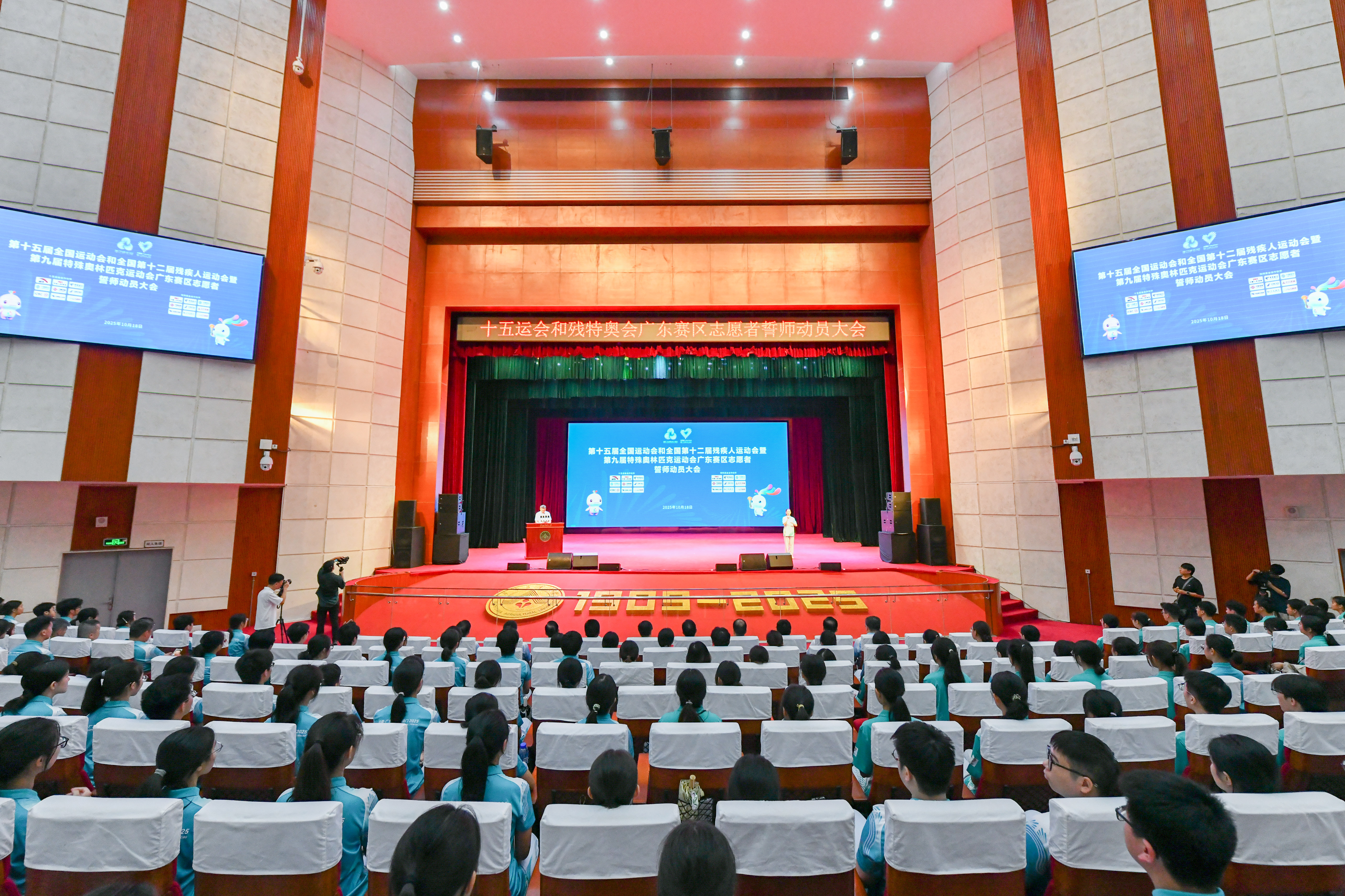 10月18日,十五运会和残特奥会广东赛区志愿者誓师动员大会在华南农业大学举行。活动现场,志愿者代表集体誓师,将以饱满的热情迎接即将到来的赛会。十五运会和残特奥会志愿者主题歌曲《我们都在这里》及MV在活动上正式发布。省有关单位领导、省执委会有关部室负责人、近百所任务高校分管领导和赛会志愿服务工作负责人共同见证这一重要时刻。十五运会和残特奥会广州赛区执委会副主任、华南农业大学校长薛红卫出席活动。