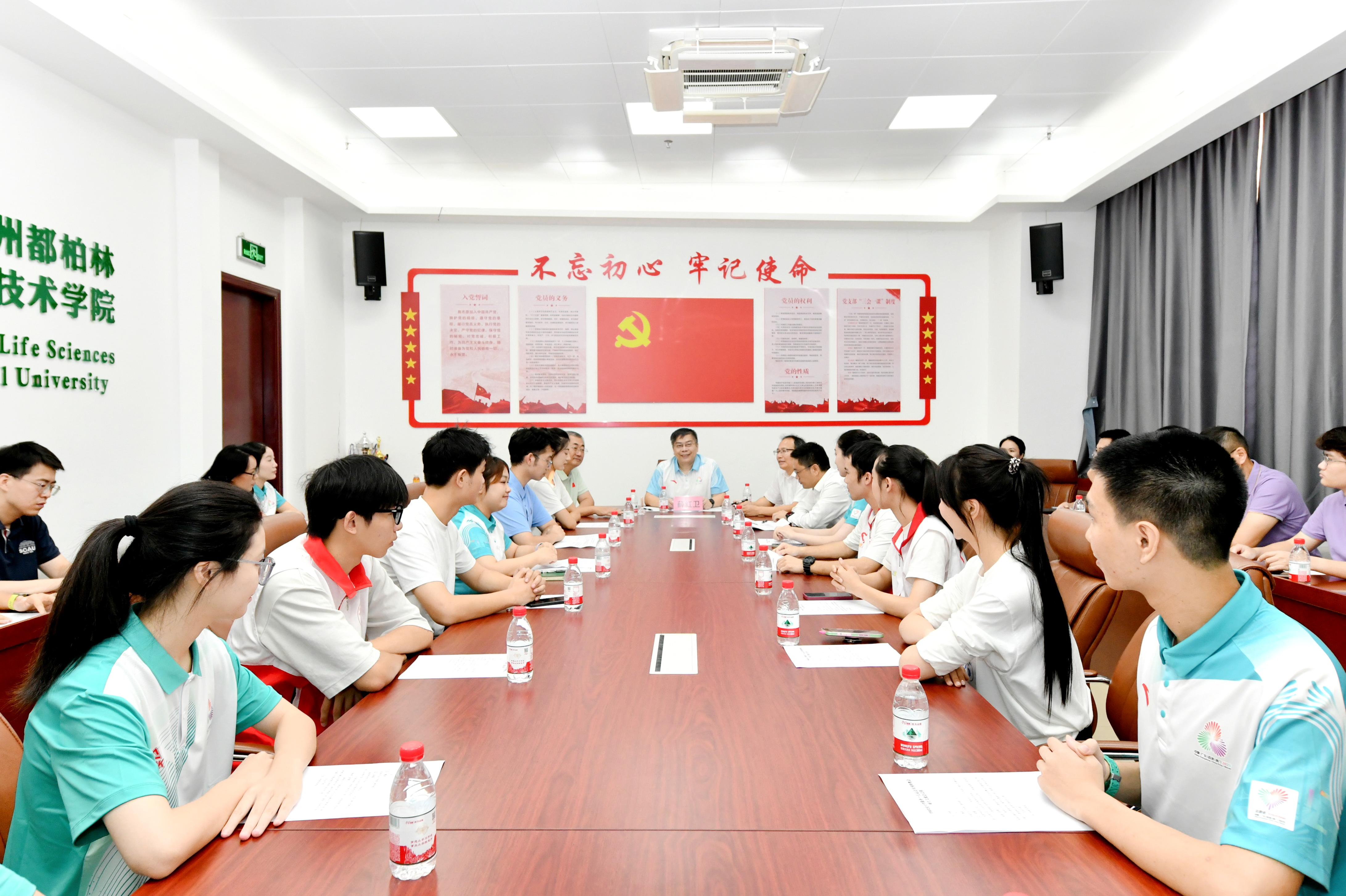 誓师动员大会结束后,校长薛红卫与华农服务十五运会及残特奥会师生代表座谈交流,校党委副书记丁红星、副校长杨运东参加座谈。