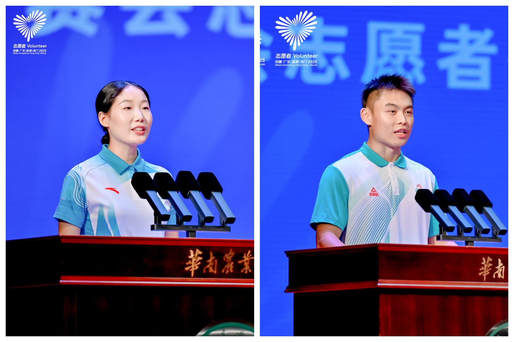 残特奥会赛会志愿者代表、华南师范大学学生毛伟彬表达了自己对残特奥会志愿服务的认识:“我将认真运用好助残技能、沟通技巧、应急处置等志愿服务知识,争当‘细节控’;全身心投入志愿服务工作,用青春热忱展现‘湾区气质’。”
