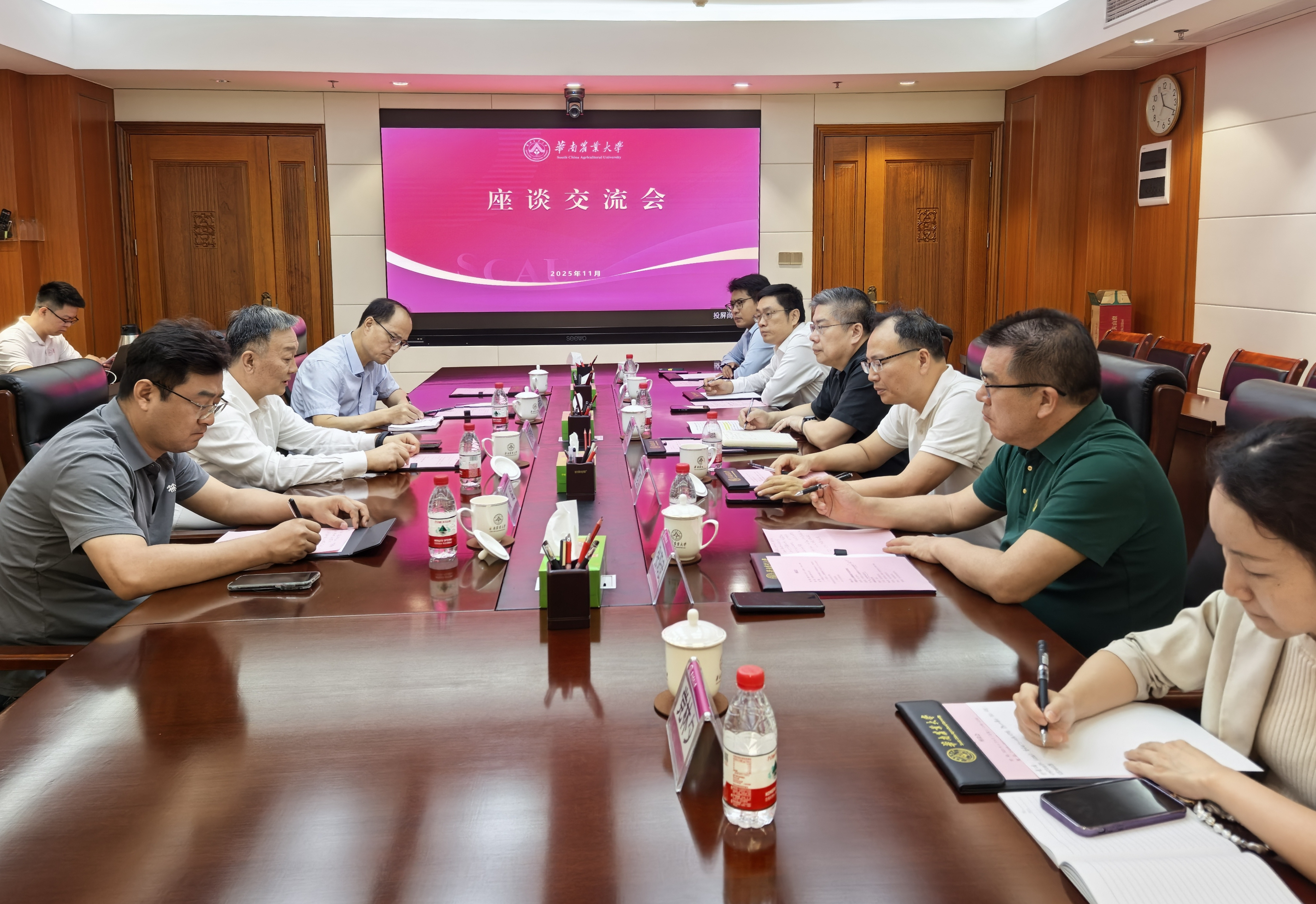 近日,宁夏贺兰山东麓葡萄酒产业园区党工委书记黄思明一行来校调研交流,推进第三届全国大学生葡萄与葡萄酒科学文化节筹备工作。校长薛红卫、校党委副书记丁红星接待来宾并座谈。