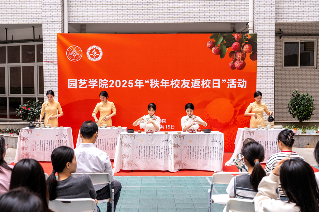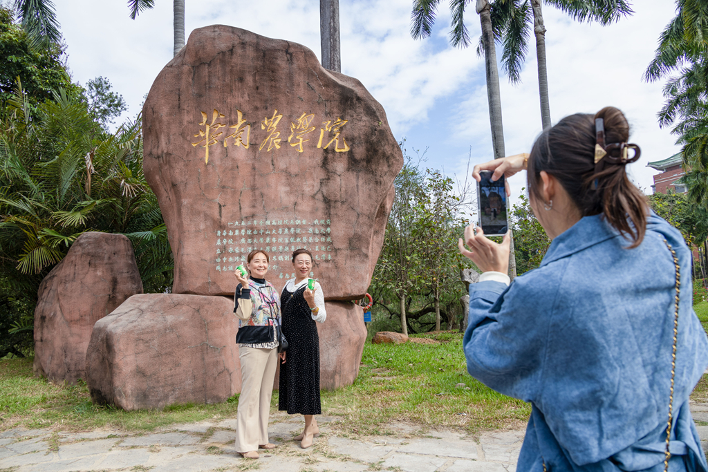 同时,各学院广泛联络校友,结合学校办学116周年与学院实际,开展了一系列各具特色的校友返校活动。邀请广大毕业生欢聚一堂,忆往昔,展未来。园艺学院推出“茶艺表演”“压花、插花”及“百花园”沉浸式参观活动,并邀请校友认养专属小植物,以绿植寄托母校牵挂与校友情谊。动物科学学院开放国家区域性畜禽基因库、广东畜禽种质资源库,现场趣味互动后更可收获精美明信片、主题小玩偶等专属文创。艺术学院组织民族服饰博物馆参观活动。