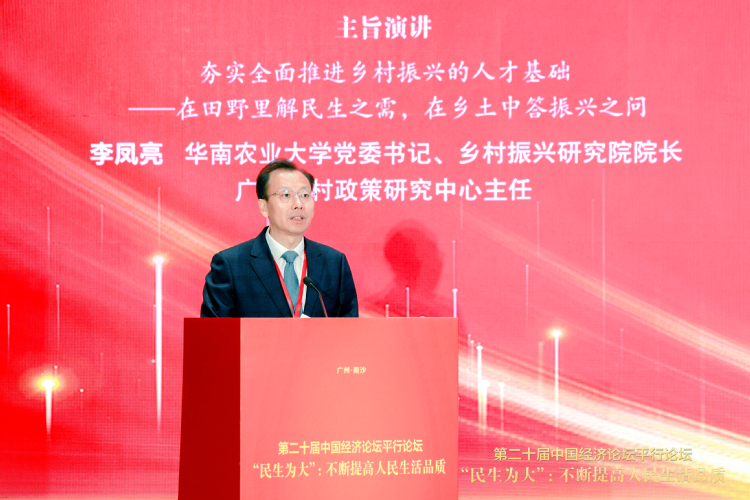 11月18日,第二十届中国经济论坛在广州南沙国际会展中心举行,中央和国家相关部委负责同志、地方政府主管部门代表、企业负责人和专家学者等参加论坛。校党委书记李凤亮受邀参加以“‘民生为大’:不断提高人民生活品质”为主题的平行论坛,并发表了题为《夯实全面推进乡村振兴的人才基础——在田野里解民生之需,在乡土中答振兴之问》的主旨演讲。