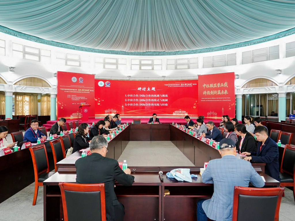 11月28日,在“中国-拉丁美洲农业科教创新联盟”(以下简称“中拉联盟”)成立五周年之际,华南农业大学在红满堂举办“中拉农业科教互惠共赢合作:途径、模式与机制”研讨会。来自中国农业科学院、中央民族大学、扬州大学、福建农林大学、广东海洋大学、仲恺农业工程技术学院、东莞理工学院、韶关学院及温氏集团、联鲲集团等联盟成员代表共聚一堂,围绕中拉农业科教合作展开深入交流。学校副校长陈乐天、中国农业科学院国家合作局副局长刘文德、哥伦比亚工程技术大学中国事务部主任Hugo Geovanny Hilarion出席研讨会。