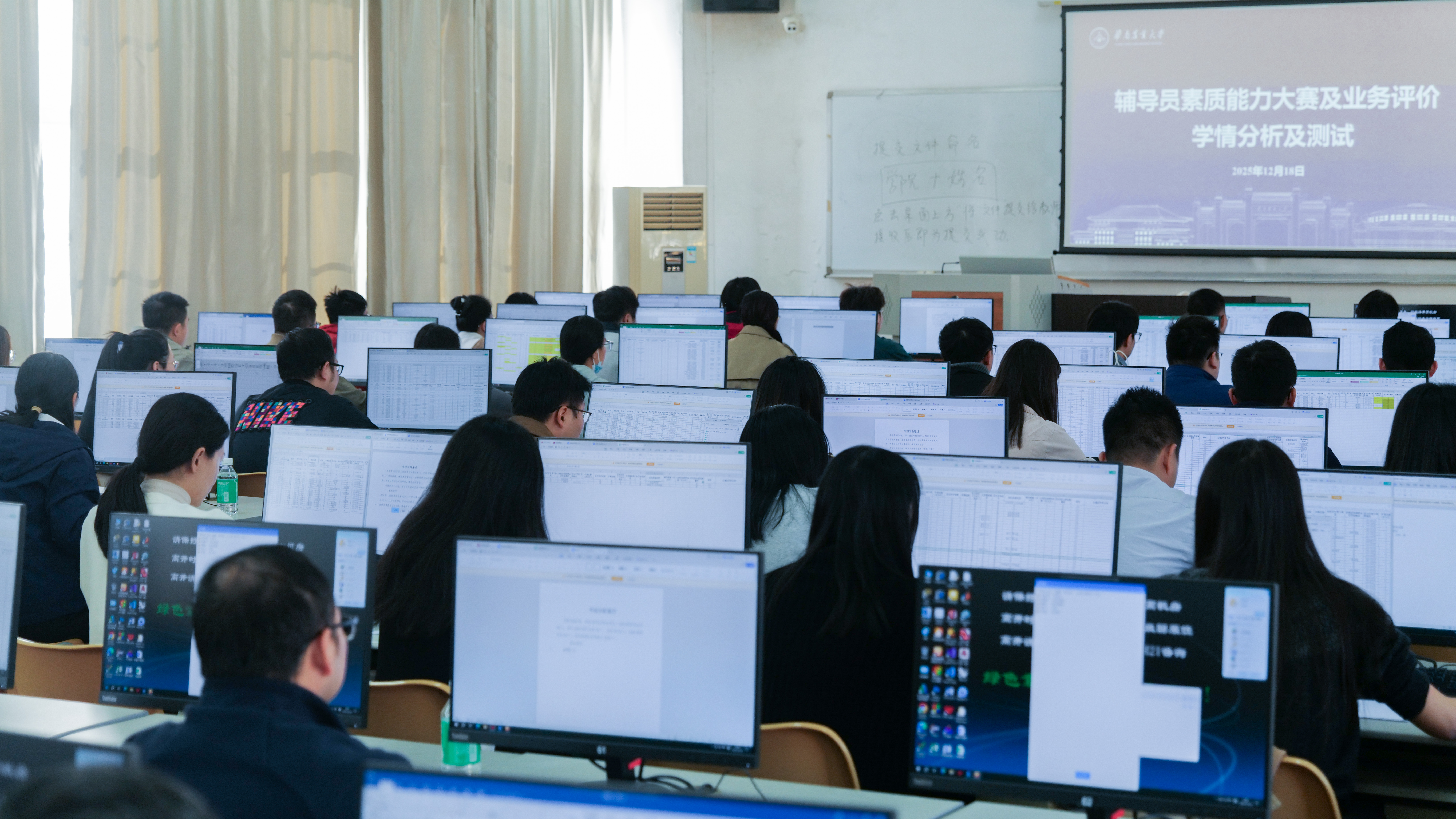 为进一步提升辅导员队伍专业素养与实战能力,近日,学校在东区实验楼组织开展2025年辅导员素质能力大赛及业务评价学情分析与测试环节。学校党委副书记丁红星、陈磊到场指导。全体一线辅导员参加考核。