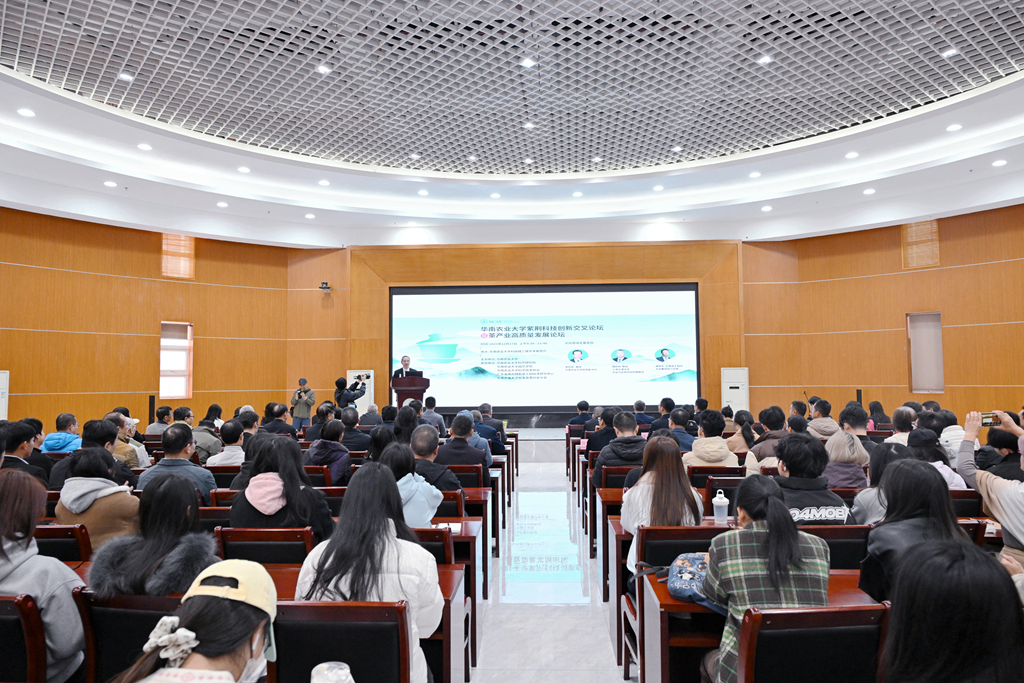 12月27日,华南农业大学昭阳湖畔茶香弥漫,一批优秀茶企沿湖设展,现场展示茶艺、奉上茶点、推介特色茶叶,吸引众多师生与市民驻足品鉴、交流询问。科技楼报告厅内,一场别开生面的茶艺表演《五色禅心》拉开紫荆科技创新交叉论坛暨茶产业高质量发展论坛帷幕。论坛上,校内外茶学专家、地方政府代表、茶企代表与行业校友齐聚一堂,就茶学专业建设、人才培养、产业发展等问题开展深度交流。