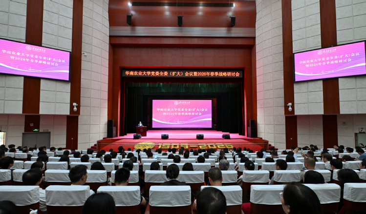 2月27日,华南农业大学召开党委全委(扩大)会议暨2026年春季战略研讨会,全面总结2025年工作成效,紧扣“攻坚跨越”主题系统部署今年重点工作。校党委书记李凤亮、校长薛红卫作工作部署。