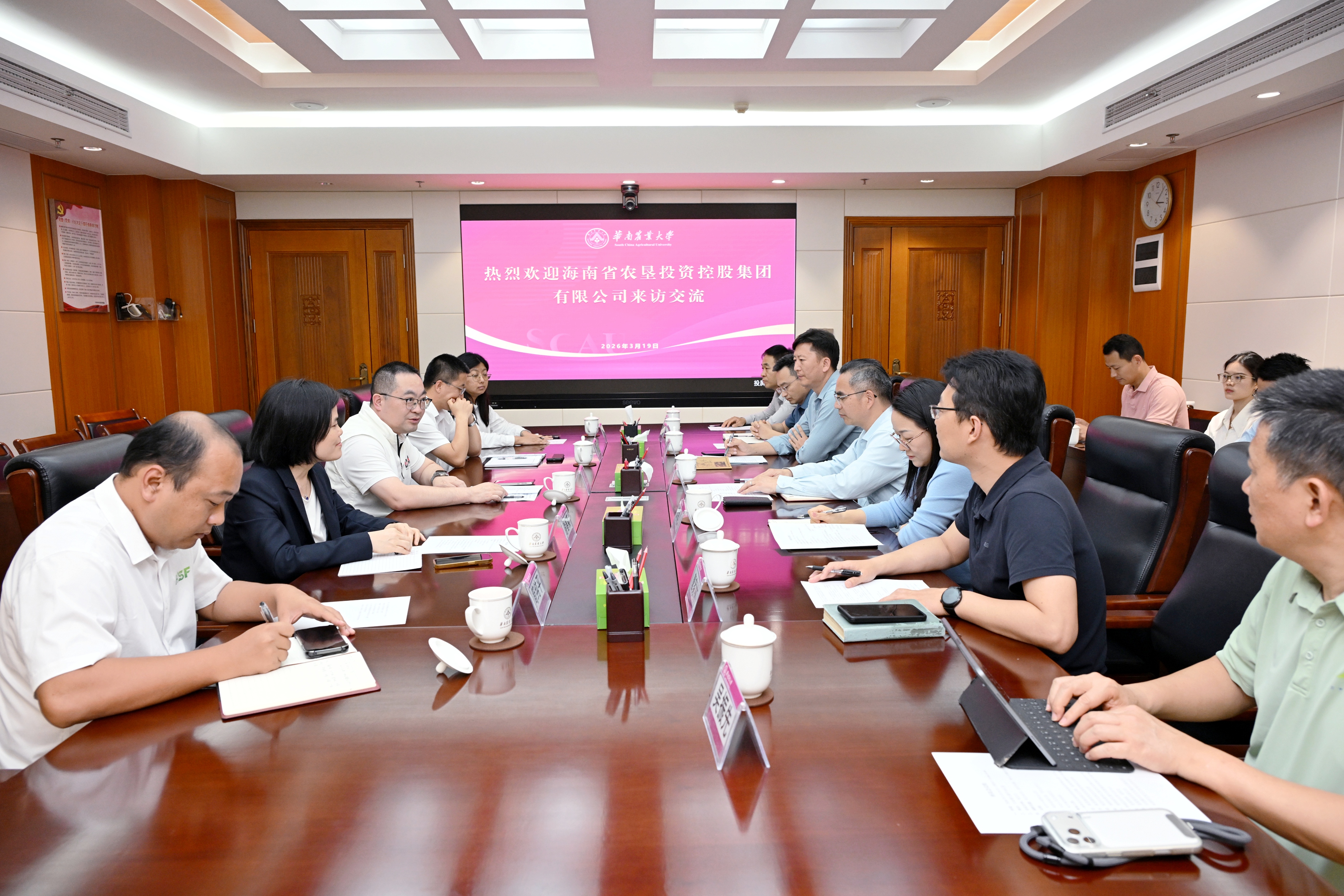 3月19日,海南省农垦投资控股集团有限公司(以下简称“海垦集团”)副总经理周俊带队来访学校,围绕南繁育种、智慧农机、水产养殖、水稻航天育种等领域的科技创新与成果转化商谈校企合作事宜。副校长陈乐天接待来宾并座谈。