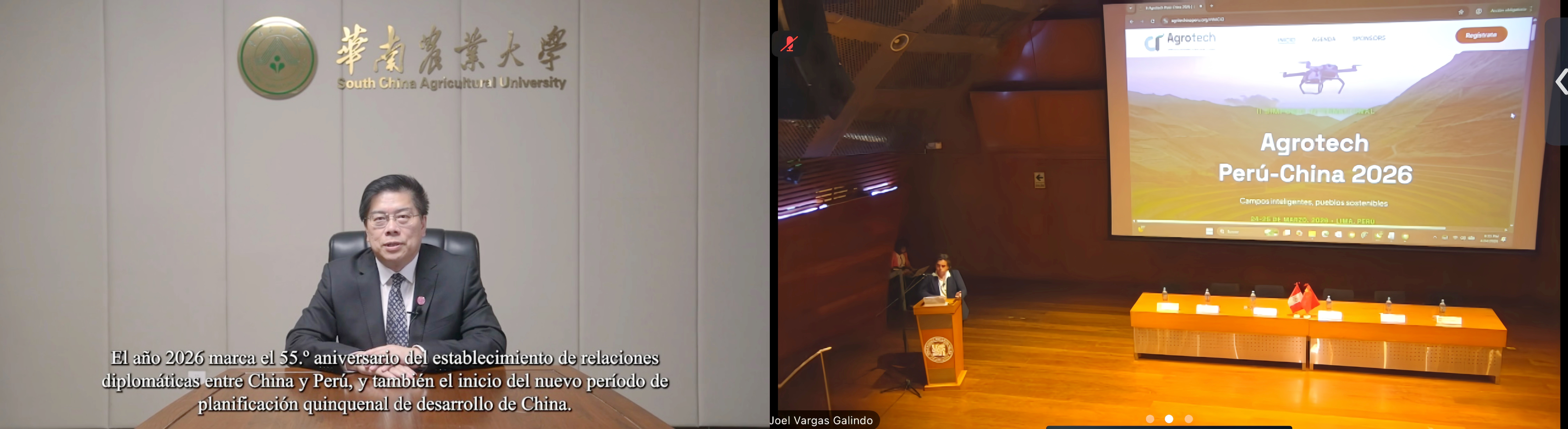 近日,由华南农业大学与秘鲁里卡多·帕尔马大学(URP)联合主办的“2026第二届中秘国际农业技术研讨会”以线上形式成功举办。校长薛红卫参加会议并讲话。