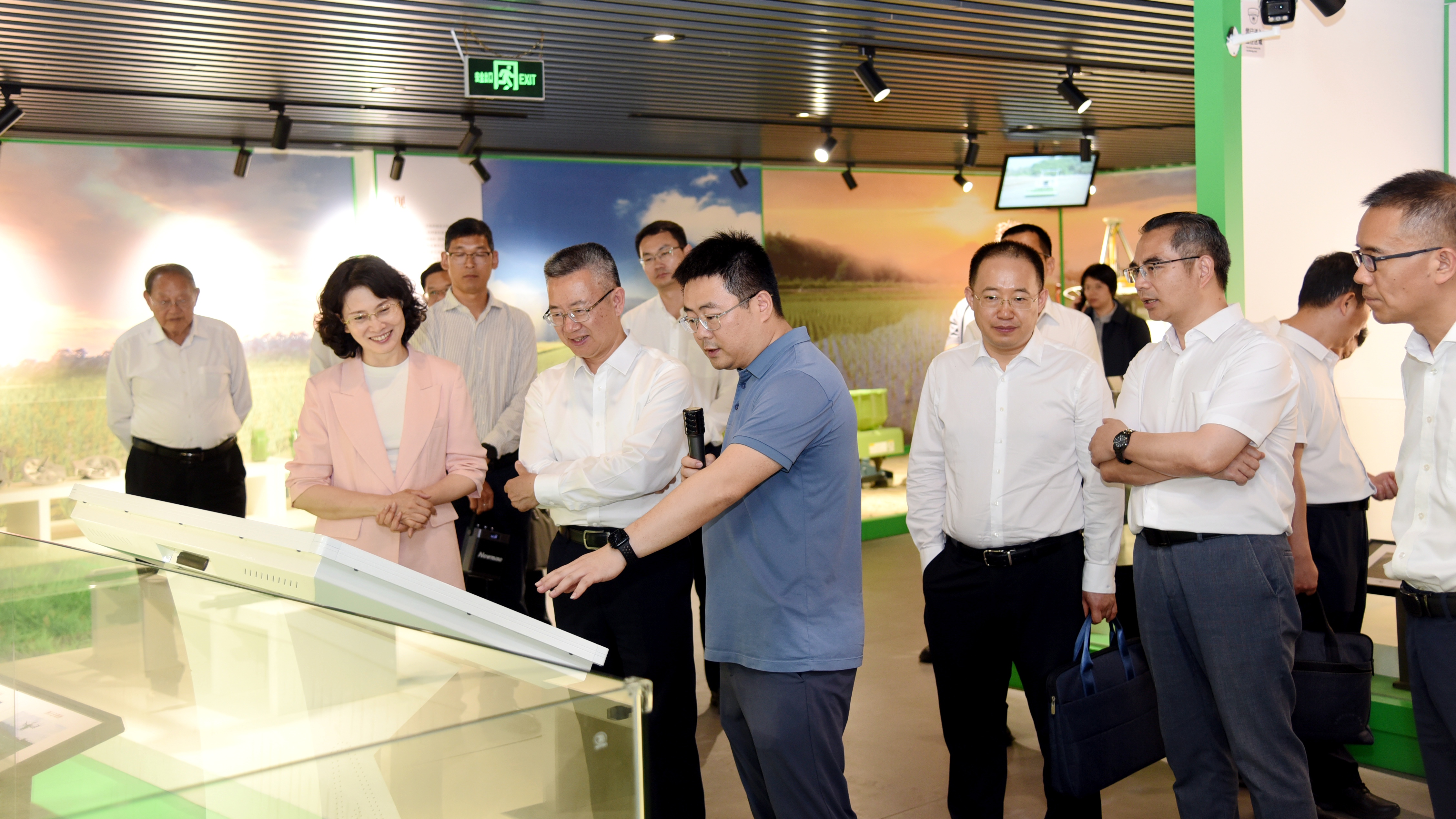 期间,江门市委市政府一行调研了学校水稻生产机械化博览馆。