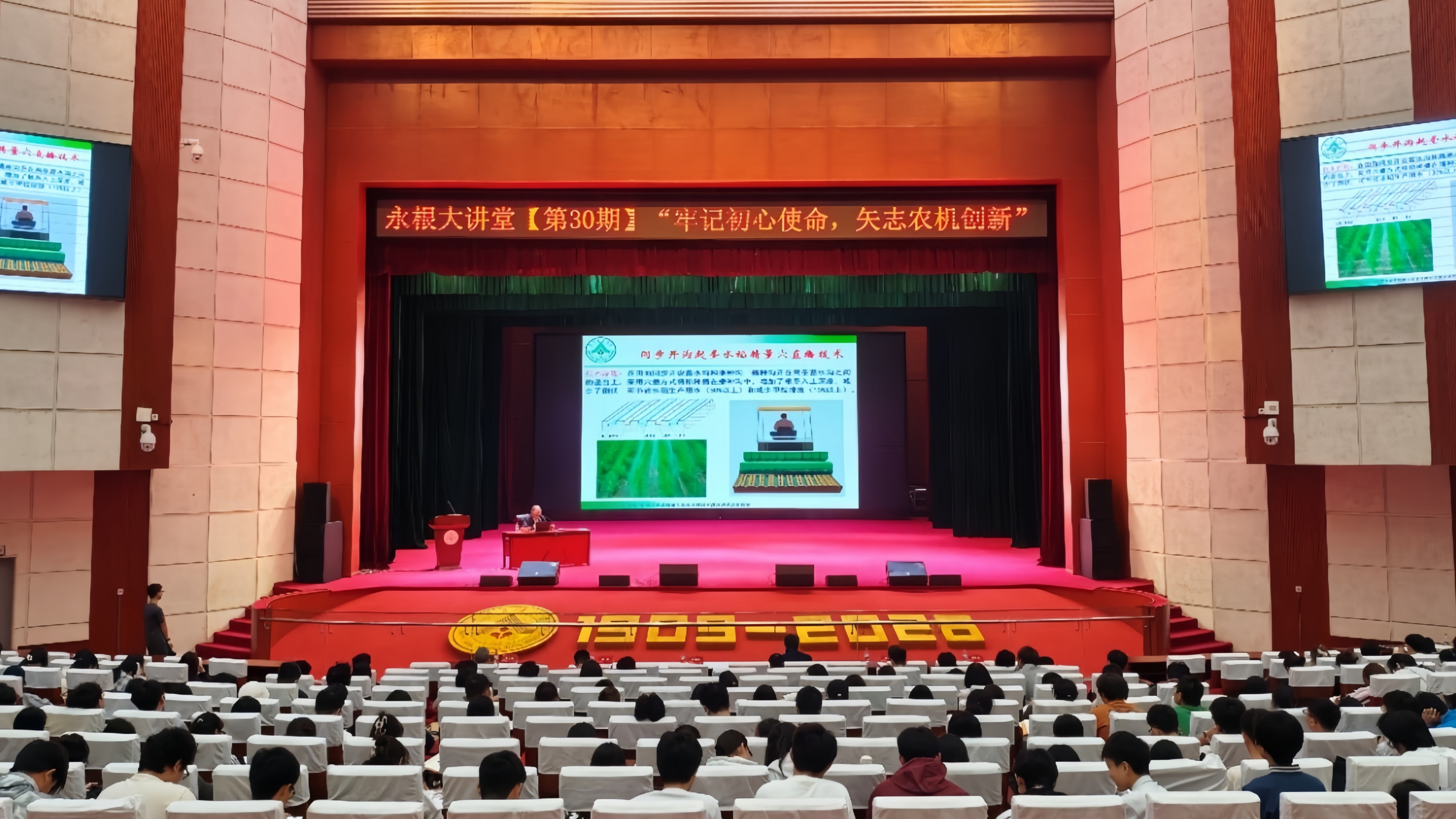 近日,学校在丁颖礼堂举办第三十期永根大讲堂。本次活动特邀中国工程院院士罗锡文教授作题为《牢记初心使命,矢志农机创新》的主旨报告,卢永根书院350余名师生到场聆听学习。